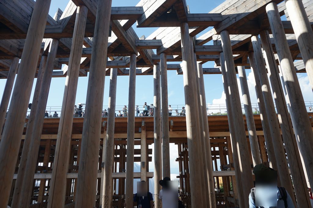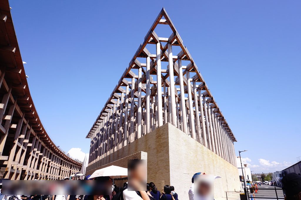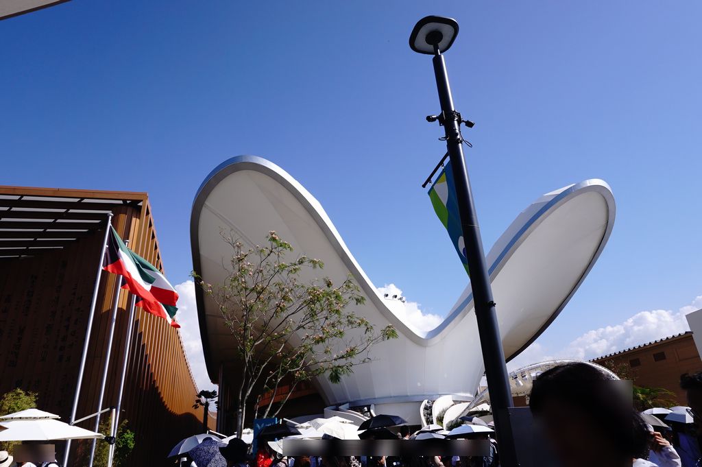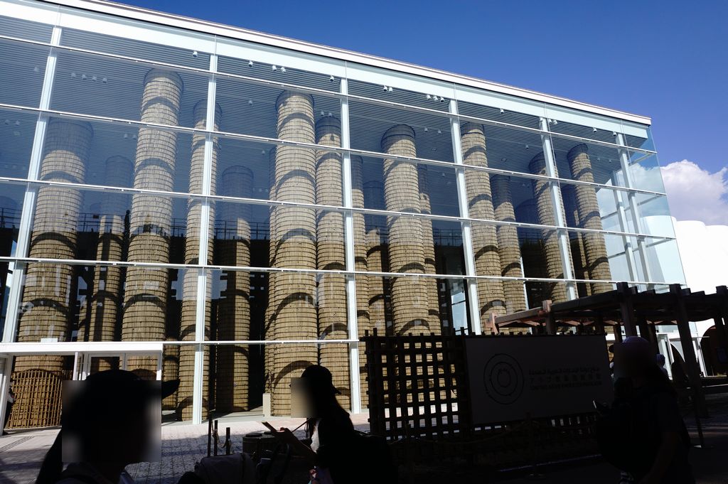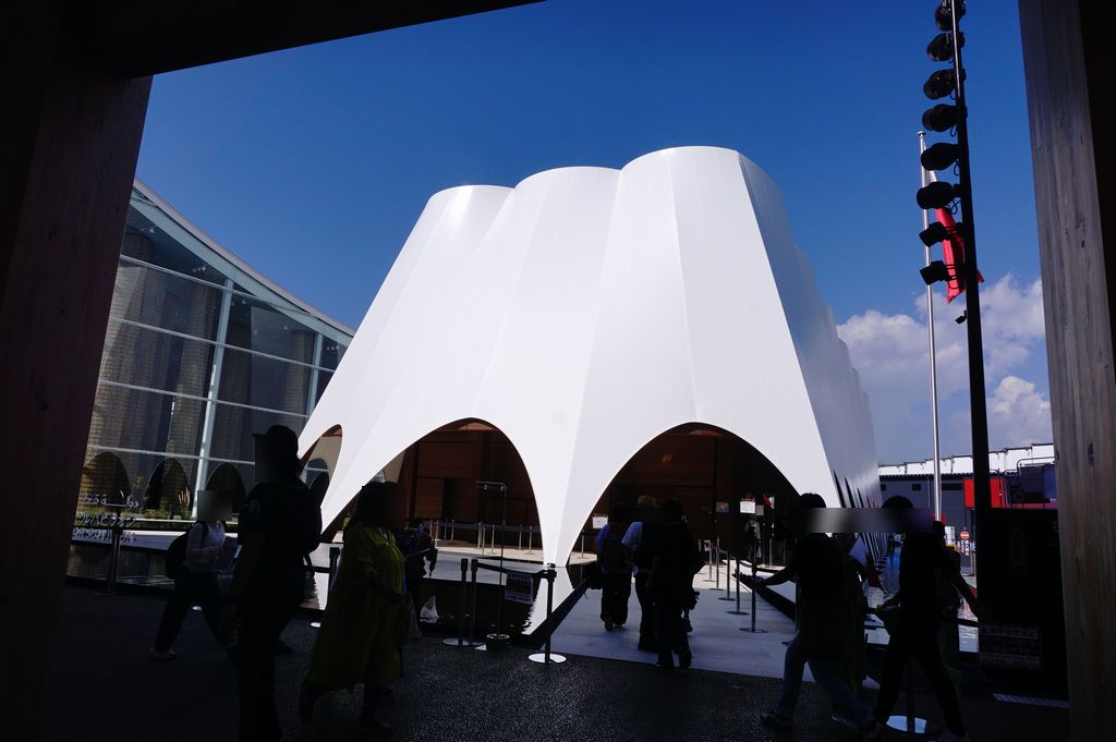 大屋根リングの隣にある 杉の木の柱が美しい建物です。この建築デザインは「知の庭」未来社会のラボラトリー を象徴しているとのこと。館内ではウズベキスタンの様々なプロジェクトが紹介されています。次のエリアでは、360度の映像を楽しみながら 床が上がる仕組みになっていて 屋上の「木の庭」杉の木の庭 に出られます。閉幕後、杉の木はウズベキスタンで再利用されるそうです。