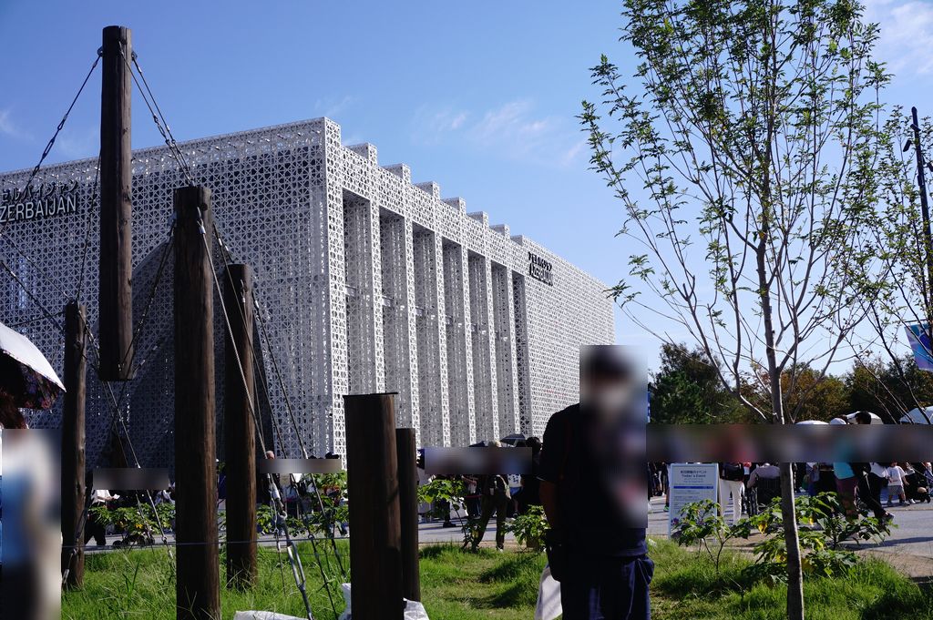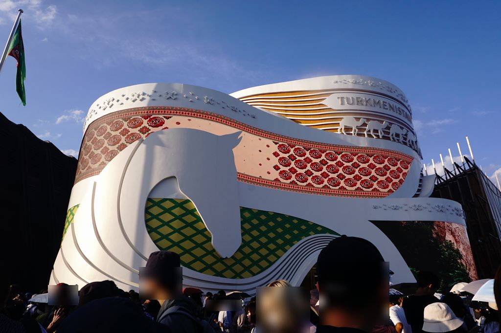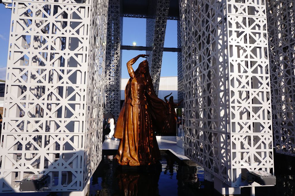 白いパビリオン館の入り口では「持続可能性のための7つの橋」と「7人の踊る彫像」が出迎えてくれます。不朽の名作「7人の美女」から着想を得ているそうです。館内は没入型体験が出来る映像でアゼルバイジャンを紹介しています。専用展示場は7つに分かれて文化・芸術などを紹介しています。カフェも大人気。女性の踊る彫像が印象的なパビリオン館でした。